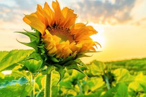 پهنک برگ هایی که در معرض نور است همراه با خورشید تغییر جهت داده و معمولا به حالت تقریباً عمود بر اشعه آفتاب قرار می گیرد . پهنک برگ هنگام صبح به سمت شرق ،هنگام غروب به سمت غرب و ظهر رو به بالا می باشد . گل آذین آفتابگردان طبق یا کپه ای می باشد. لقاح به دلیل اینکه پرچم ها زودتر به بلوغ میرسند غالباً از نوع دگرگشنی می باشد .